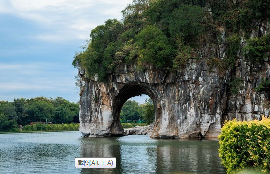 Xiangshan Scenic Spot es un lugar escénico centrado en el punto de referencia de Guilin, Xiangshan, que tiene la forma de un elefante bebiendo agua. Además de la montaña de la nariz del elefante, hay cuevas de agua y luna, isla del amor, Puxian Pagoda, bodegas de vino de tres flores y otros lugares escénicos en el lugar escénico, con sus propias características.