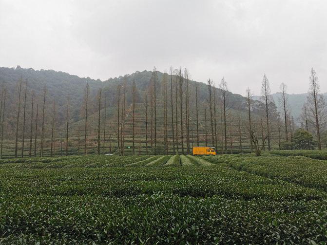 El jardín de té tiene una señal vertical, aproximadamente es esta plantación de té quién es la base de té de esta manera, de repente ver "Lake West Lake Longjing Tea Base" inexplicable sentimiento cordial - la universidad va a la librería Sanlian en la orilla del lago generalmente siempre pasará por la orilla del lago. El sendero de montaña a lo largo de un barranco de arroyo, al lado de la carretera, arroyo de todo tipo de flores silvestres o frutas silvestres, a ambos lados del jardín de té hay tres o dos agricultores de té en la cosecha de té; El camino de montaña comienza suavemente, luego se vuelve gradualmente empinado, a la cresta de la montaña Jiuquling gira a la derecha para el Templo Lingyin, en dirección opuesta a la casa, gira a la izquierda y sube a lo largo de la línea de la cresta a la montaña Zhugan.