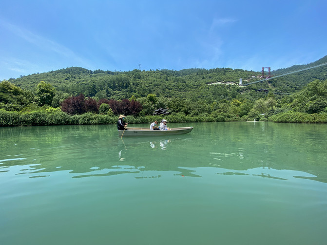 En la segunda parada, experimentamos un flyover. Julio está llegando gradualmente al final, y la provincia de Zhejiang también ha llegado a la temporada de invasión. En un clima sofocante, un rafting, que es natural muy cómodo. Deslizándose de un salto de 200 metros de altura, el bote de goma se aceleró a gran velocidad, cada vez más rápido, frotando directamente la superficie del agua.