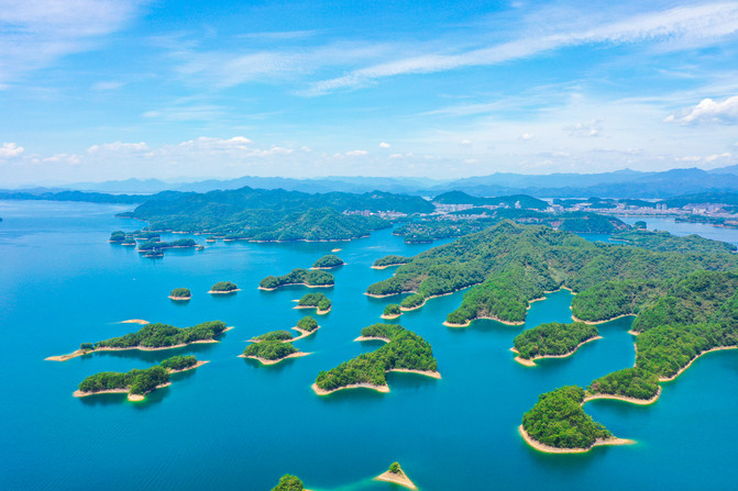 Al llegar al lago Qiandao, la gente a menudo dice que "no se puede ver la isla en el Peak de Mei, no conoce la verdadera cara del lago Qiandao". Al llegar a la plataforma de observación de Meifeng en el lago Qiandao, salga de la plataforma de observación y se ve un lago interminable. La isla de forma cambiante se encuentra en el lago. Hay montañas ondulantes en la isla, algunas directamente en el cielo nublado, algunas bajas como montículos. Cada pico estará cubierto por ramas y hojas exuberantes de árboles. En el agua verde del lago, hay olas blancas, el barco de crucero pasa por el lago, habrá una línea blanca, el lago es azul en verde, bajo la iluminación del sol, entregará un poco de luz de estrellas, el lago parece rociar escamas de pez brillantes, coloridas, deslumbrantes. El agua del lago se contrasta con los picos de las montañas.