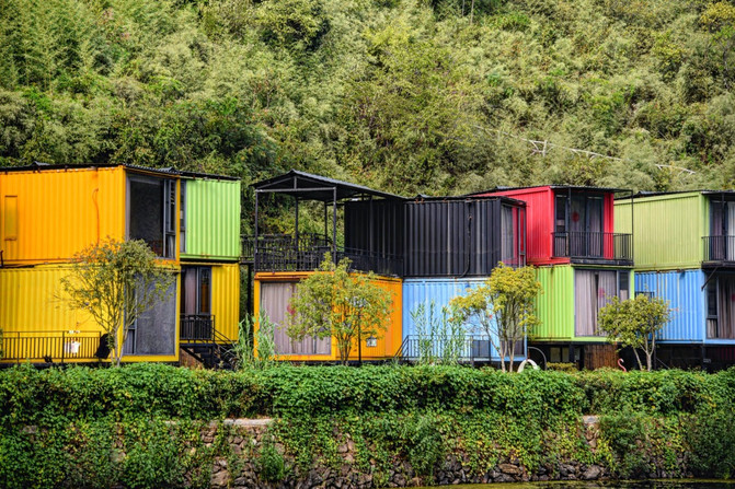 En Shengxianli Zhuxi Adventure Park Scenic Spot, también hay un contenedor especial. Está anillado entre el paisaje y el agua, el contenedor colorido, también se ha convertido en el rollo de pintura de primavera poética más espléndido. Alojarse en el colorido hotel de contenedores, la pequeña ventana es el hermoso paisaje de la montaña de la montaña.