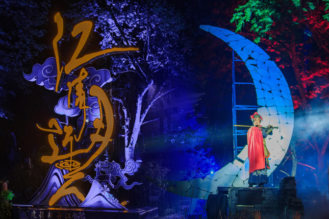 Cuando el sistema de agua drena el agua del escenario, se proyecta una gran imagen del elemento lunar en el escenario redondo, reflejando un final feliz. Y la "luna" también se convirtió en la expresión emocional a lo largo de toda la actuación, cinco actos de actuación respectivamente utilizando cinco tipos de medios técnicos diferentes para presentar cinco lunas diferentes: la luna de Xin 'anjiang, la luna de la poesía Tang, la luna de la reencarnación de la vida, el mes de la raíz, el mes de la vida pasada y la vida actual, etc. Expresas multicapa, y luego hornear "Yanzhu milenios, el amor de la luna de Jiangxian!" Expresión del tema condensado.