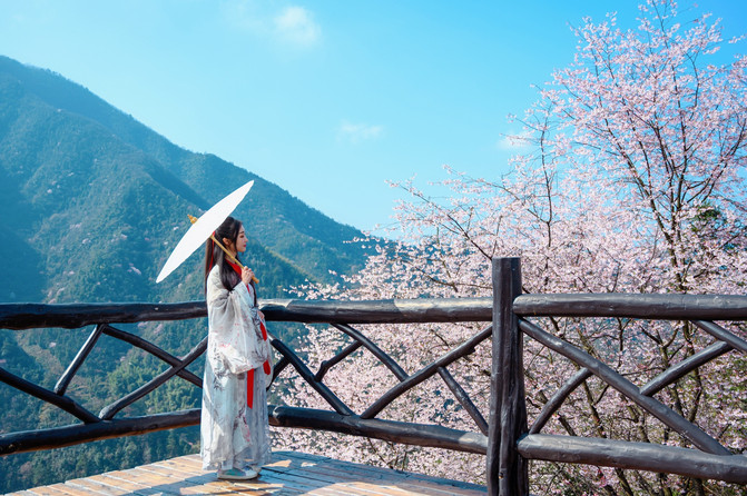 Si te gustan las flores de cerezo silvestre, la primera parada de tu viaje es la cumbre del Range Rover, que está a unos 10 minutos a pie del teleférico. El mejor lugar para tomar fotos es en la plataforma de observación, ponerse un traje antiguo y pararse bajo un árbol de cerezo para tomar fotos es romántico. Mirando hacia arriba, las flores rosadas y blancas asombran todo el valle, románticas y bonitas.