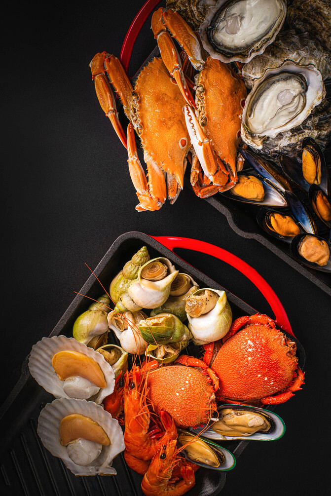 Un marisco abundante, una cantidad ilimitada de hígado de ganso como una variedad de postres en forma de flor de melocotón y una bebida de flor de melocotón en el restaurante asiático de estilo en la noche de San Valentín, con un sabor de melocotón ligero, preserva una hermosa imagen de vacaciones.