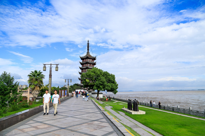 El parque turístico de observación de mareas es uno de los "diez mejores parajes escénicos" de la provincia de Zhejiang, es el mejor lugar para ver la marea de Haining, con torre de observación de mareas y plataforma de observación de mareas. Es el mejor punto de vista a lo largo del río Qian Tong. "Una historia de una ciudad, un río y marea", esta es probablemente la mejor interpretación de la antigua ciudad de Yanguan.