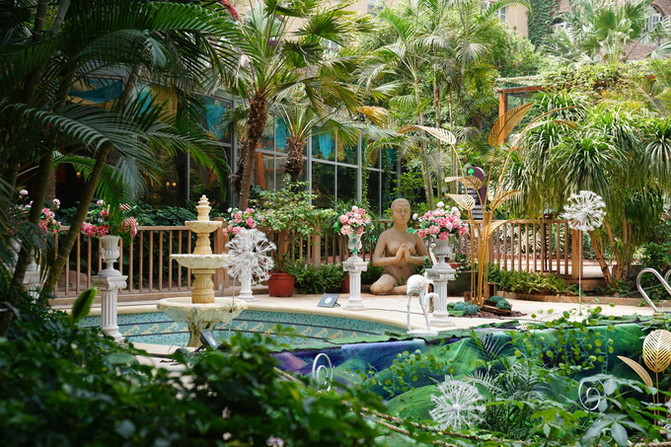 Con el fin de facilitar el viaje, nos alojamos en Hangzhou No. 1 World Hotel, un poco como un laberinto, ya que es un edificio de ocho ángulos, visitamos el hotel de paso, estilo tailandés tiene una sensación de vacaciones, el jardín en el atrio es aún más hermoso