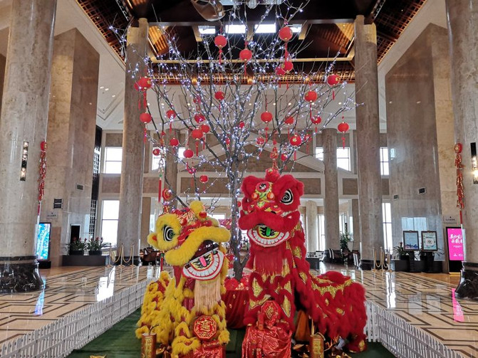 espacioso y luminoso, un grupo de peces giratorios en el techo alto, el área de descanso también está amueblada con muebles de estilo chino, y la pared también está colgada con pinturas "espectaculares saltos de peces en el lago de miles de islas".El gerente del vestíbulo fue muy amable al entrar y el check-in fue rápido.