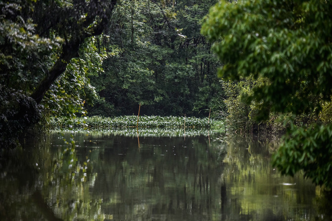 La fuerte lluvia finalmente se detuvo, y la temperatura pareció disminuir un poco, al menos mucho más que el calor sofocante antes de la lluvia. Cuando te sientas en un bote de lanzamiento para recorrer el paisaje del humedal de West Creek, descubrirás que hay muchos lugares secretos del país de las hadas escondidos dentro del humedal de West Creek.
