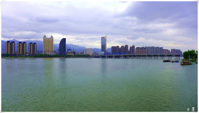 Cruce el puente del río Fuchun y llega al otro lado del río. Hay un afluente del río Fuchun, el río Fanshui, entre la montaña Tongjun y la plaza Tongjun, y un puente de cable lo comunica. La esquina del río Fanshui y el río Fuchun es el área de la antigua ciudad del condado.