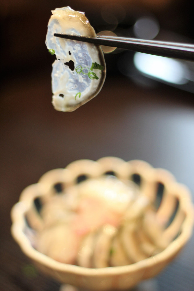 Después de que la salsa de mostaza y salsa de soja se absorbe completamente en los cuatro lados del erizo de mar,