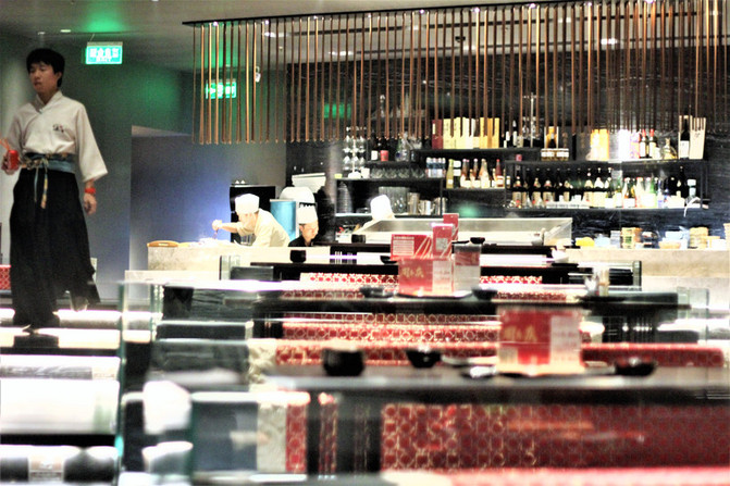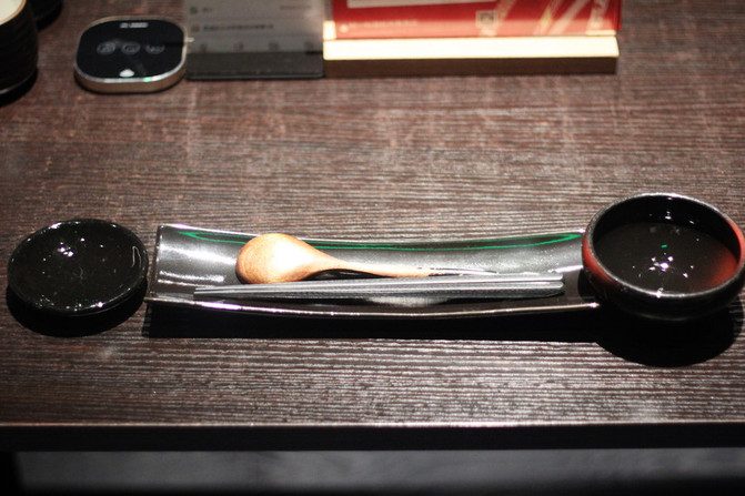 Los cubiertos también son series negras, platos de hueso en forma de barco largo, delicado también características, hay un botón en la mesa, necesita servicio puede presionar el botón en la mesa