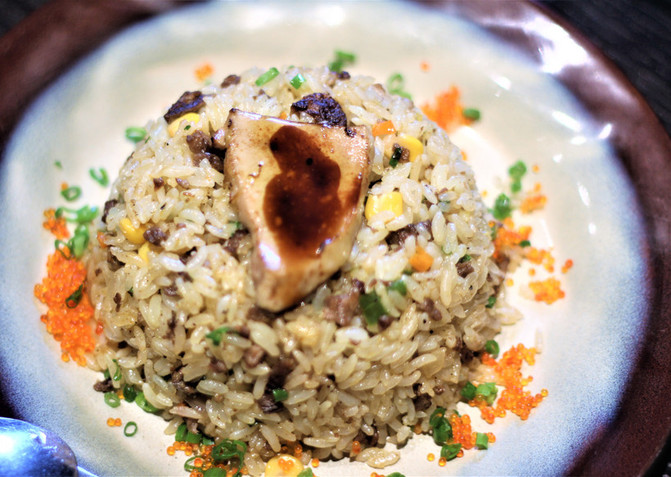 El hígado de ganso es frito ligeramente quemado, después de asado a alta temperatura, el hígado de ganso, vagamente se puede ver la grasa penetrante, debe morderlo todo para experimentar la delicia