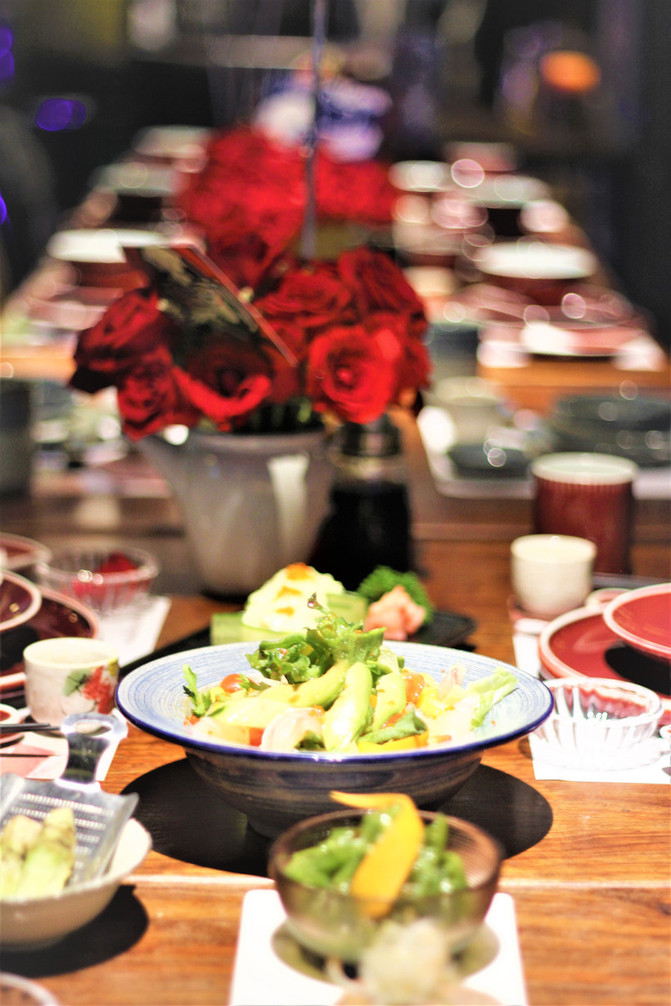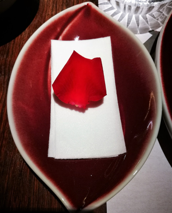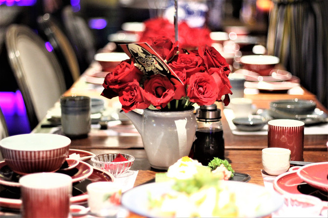 ¡Rosas, pétalos de rosa espallados en la mesa, emoción!¡Emoción! El estado de ánimo no es general.