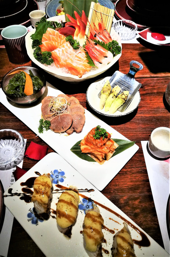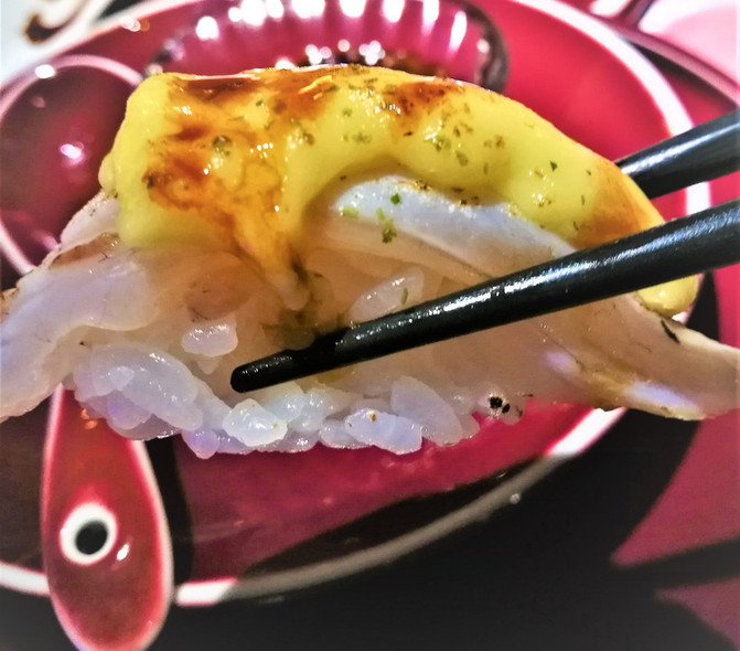 En la entrada, sentirá el pescado pescado fresco y grueso, con un sabor de queso fuerte, lo que hace que el sushi pescado pescado sea tan delicioso.