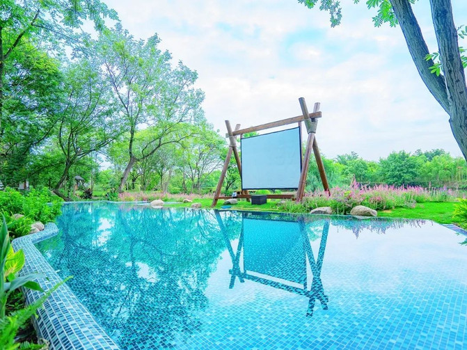 Piscina abierta infinity, puede disfrutar de la frialdad, por la noche con el cielo nocturno como cortina, con el bote como asiento para ver una película acuática.