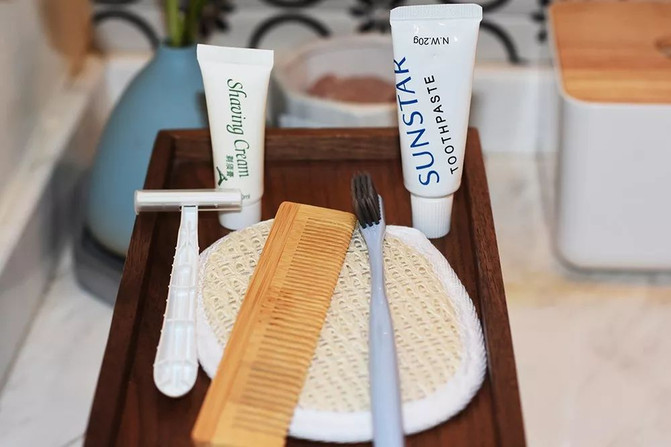 Toallas faciales de algodón crudo, toallas de baño de algodón crudo y telas de cama de algodón crudo, túnicas de baño y suaves para la piel. Los artículos de lavado, además de cepillo de dientes, pasta de dientes, maquinilla de afeitar, así como toallas de algodón, peine es de madera.
