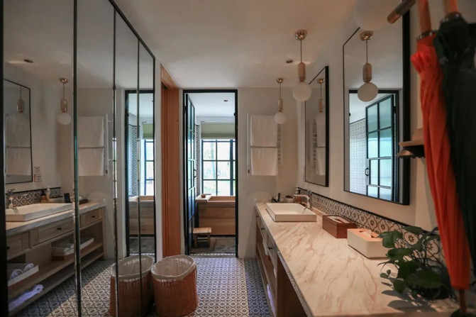 Colección FangdoDetalles íntimos, bañera de madera de ciza, POLA, DysonSeis aldeas naturales de diez millas de Fangfei se distribuyen en 93 habitaciones, cada una con un jardín independiente junto al agua, o un paisaje ágil, colectivamente conocido como Fangdong Heyuan.