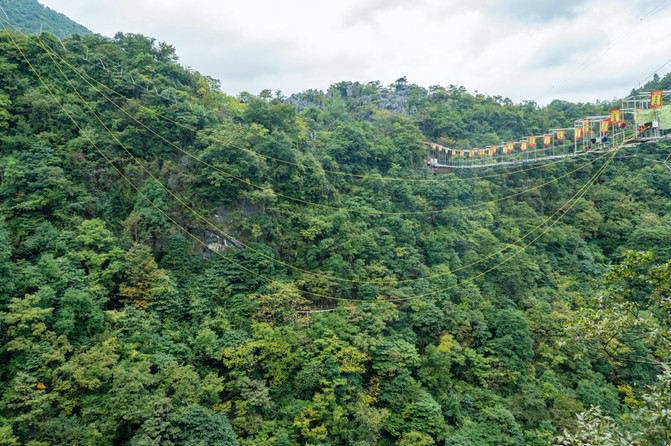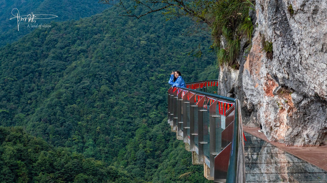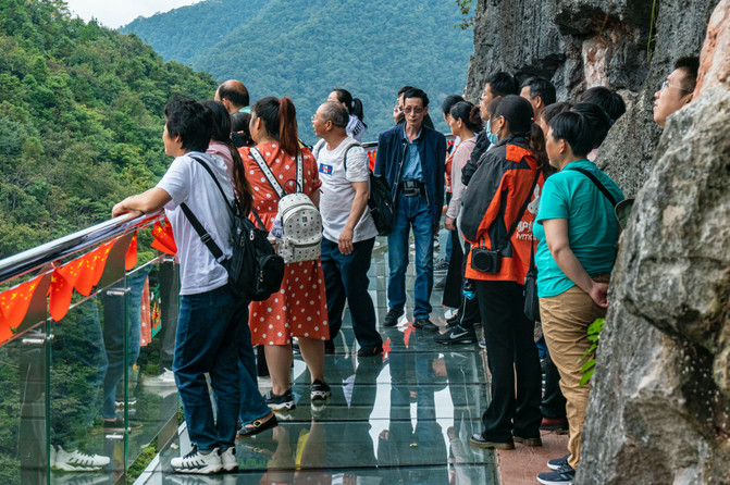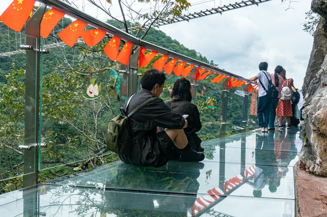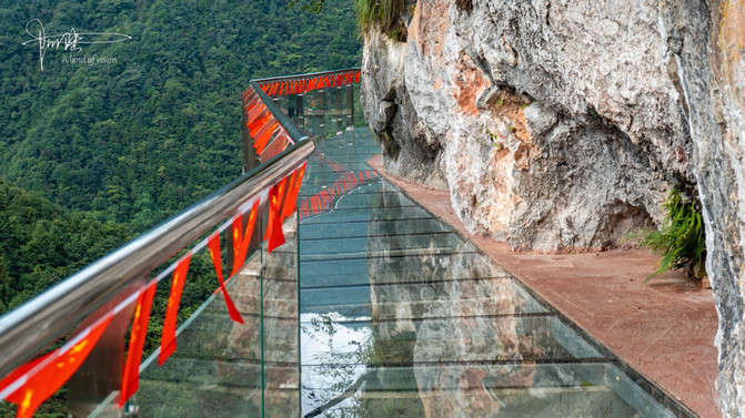 Junto con el desarrollo continuo y la mejora del punto escénico del bosque de piedra en las nubes, además del paisaje tradicional del bosque de piedra. En el acantilado, hay un paseo marítimo de vidrio de más de 150 metros de largo, que no es emocionante al principio, pero a medida que avanza, el acantilado debajo de los pies se vuelve más claro, lo que no puede evitar hacer que la gente sienta que las piernas son suaves.