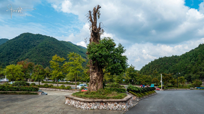 En el lado delantero del lugar escénico, hay un aparcamiento abierto y limpio, el ambiente es cómodo y da una buena primera impresión. Un árbol de campáfora con una historia se erige solo, guardando el borde de la carretera, como si estuviera dando la bienvenida a todos los huéspedes que llegan aquí.