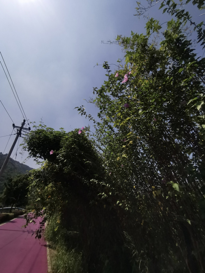 Caminando por las hermosas flores que llenan toda la pared, el agua azul y el aire verde son tan frescos.