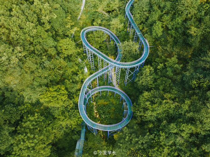 El soporte de la estructura de acero con el color principal púrpura de ensueño, junto con la corredera de vidrio templado incoloro y transparente, serpentea entre montañas verdes y valles verdes, con una longitud total de más de 3000 metros, y la altura más alta del suelo es de 100 metros, como un dragón púrpura que camina entre exuberantes bosques de bambú, lleno de autoridad.