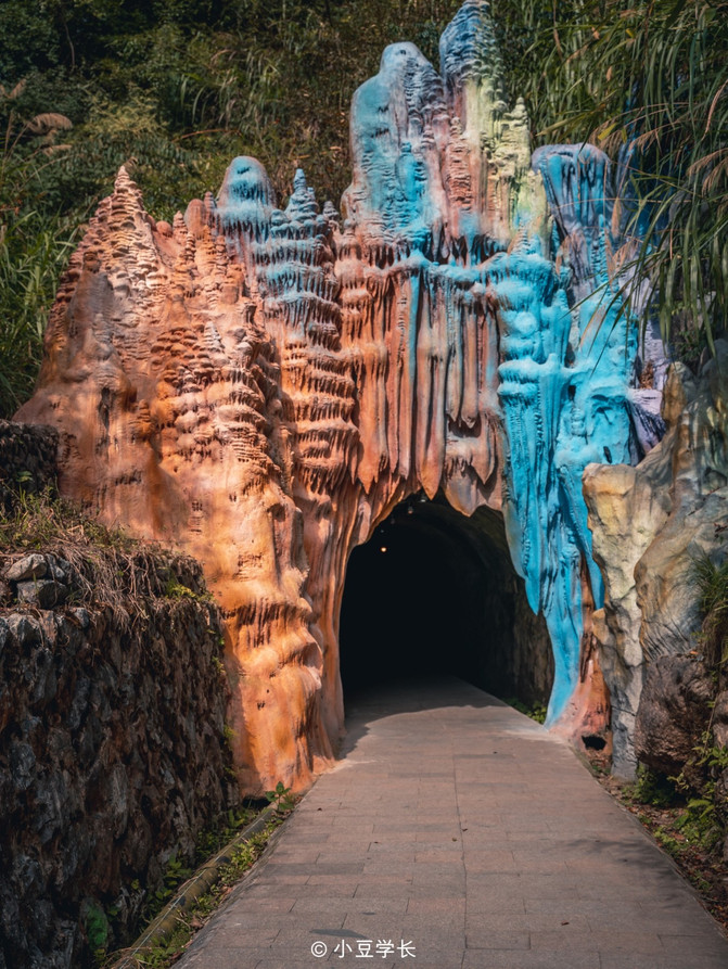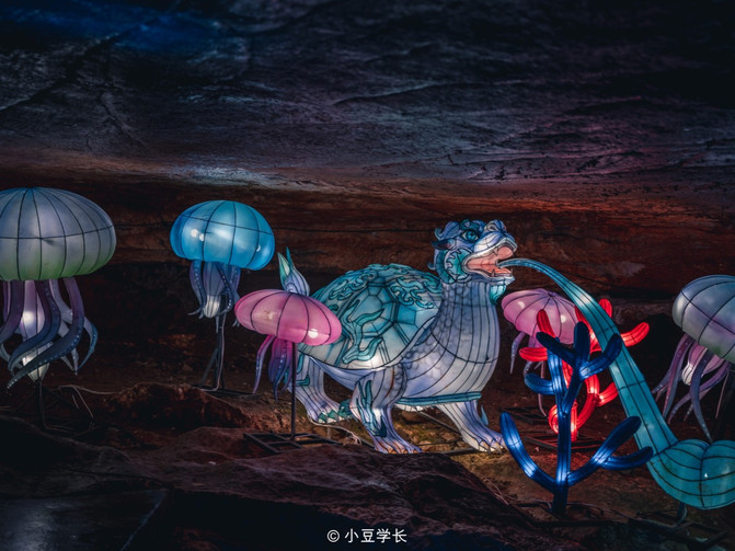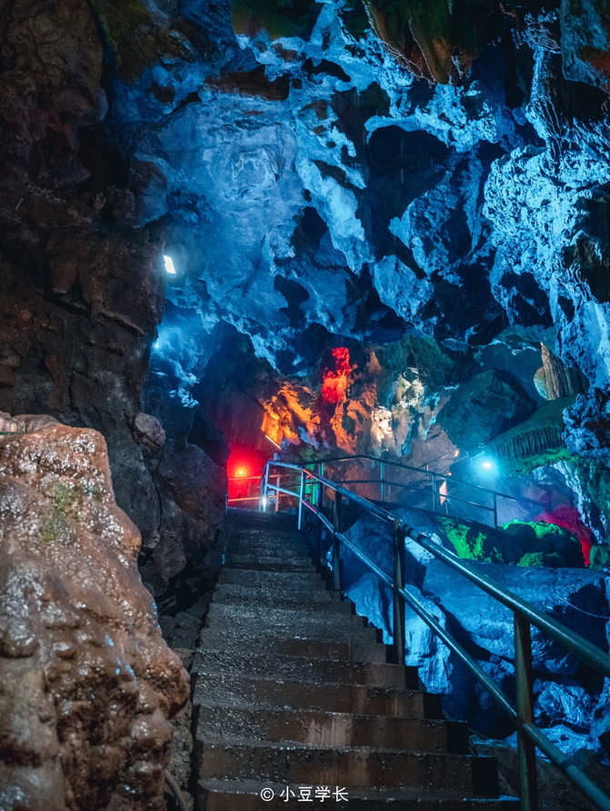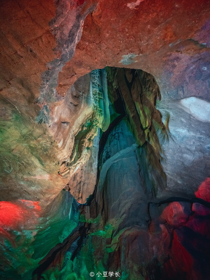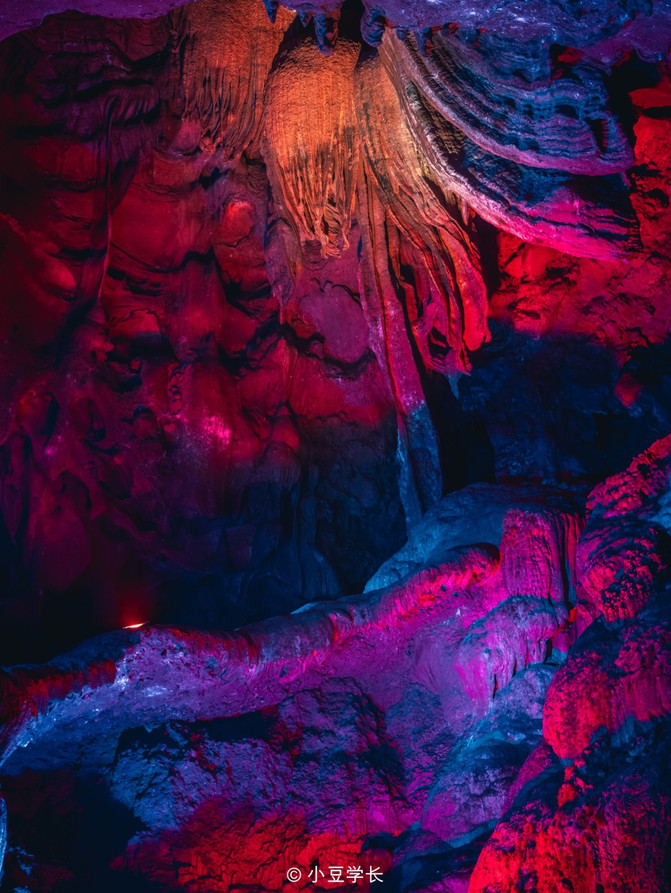 Después de entrar en la cueva cárstica, la escena dentro de la cueva es diferente, las luces de colores brillantes brillan la estalactita, como si estuviera en un país de las hadas, las piedras de diferentes formas están dotadas de colores legendarios e historias, caminando en la cueva cárstica, como un sueño.
