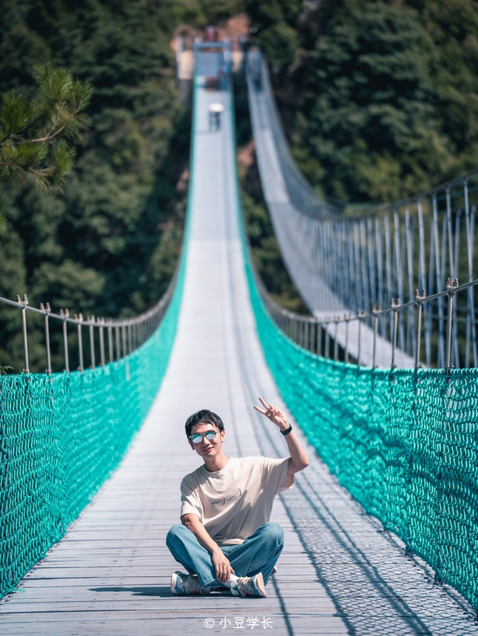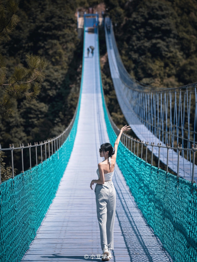 Al lado de los dos acantilados, hay un puente de cuerda de madera suspendido, llamado puente de escalera. Al lado de él está un paso a paso asombroso, compuesto por escalones flotantes. El puente, como su nombre, es realmente asombroso caminar sobre él. Si tiene coraje, también puede caminar y ampliar sus horizontes.