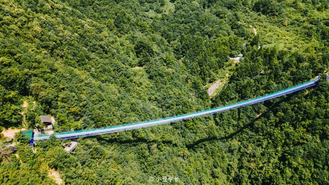 Al final del puente de cable, es el segundo récord mundial más grande del lugar escénico: la plataforma de observación de vidrio del acantilado de flores de oro púrpura. Es la plataforma de observación de doble vidrio más grande del mundo, que se erige en la cima de la montaña del lugar escénico, dando a las personas una sensación de "vista a todas las montañas".