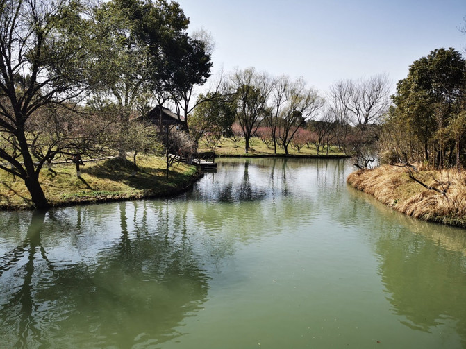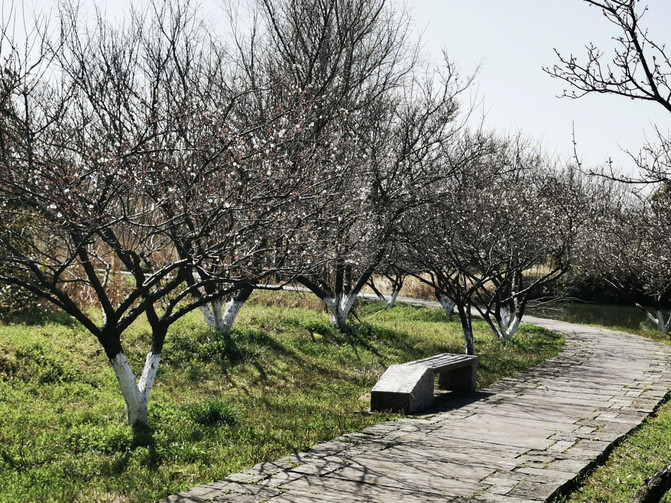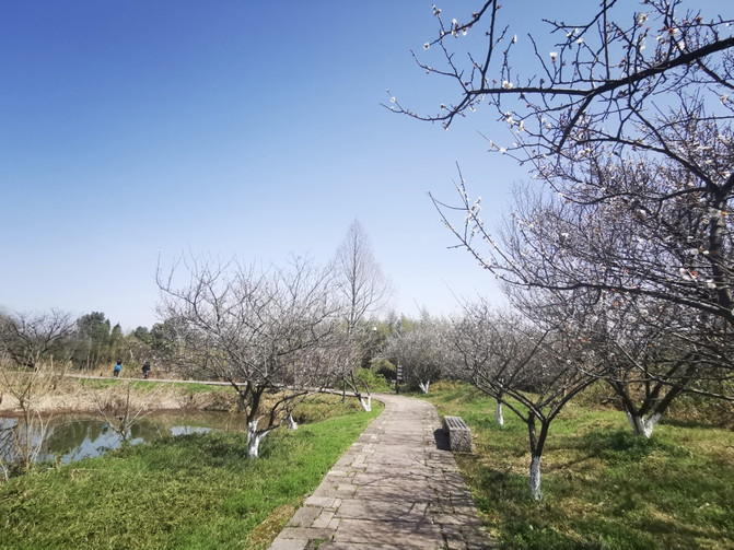 También hay muchos lugares en el parque de humedales plantados en gran área de ciruelas, Xixi Mei Villa, Xixi Cottage, Xixi Water Pavilion, Mei Zhushan Village