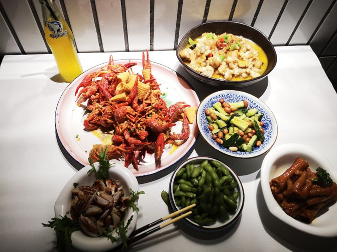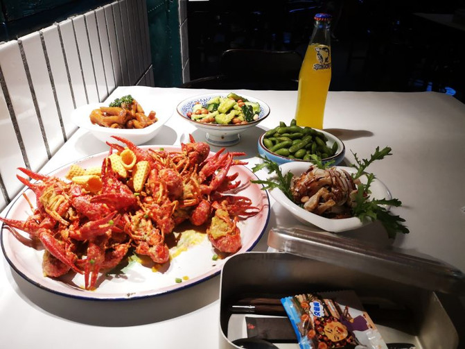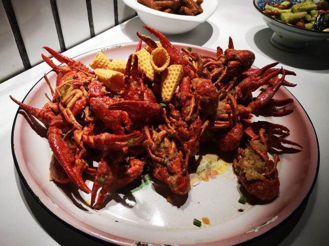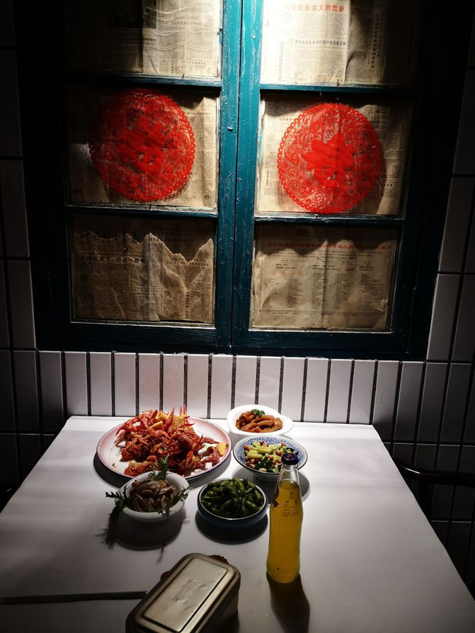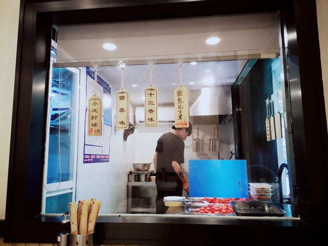 Zhongshan North Road es todavía una concurrida calle gastronómica. La tienda tiene dos fachadas, una es una ventana para vender langosta y una tienda para comer.