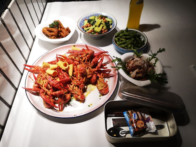 Puede comer primero la gema de huevo fuera de esta cáscara, y luego descascarar lentamente la langosta. La cáscara es bastante crujiente, y la carne es elástica, que también es una práctica de langosta bastante creativa.
