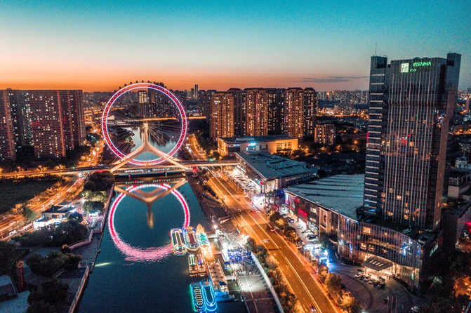 Como la única rueda gigante construida en el puente en todo el país, el ojo de Tianjin se encuentra en el puente Yongle, donde Zhu Di lideró a miles de ejércitos a través del río. Está rodeado de edificios modernos altos, torres de tambores tradicionales en el patio antiguo y áreas de costumbres extranjeras llenas de características exóticas, que combinan la colisión de intercambio cultural de Tianjin en el pasado.