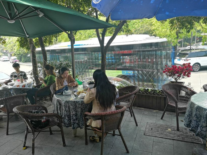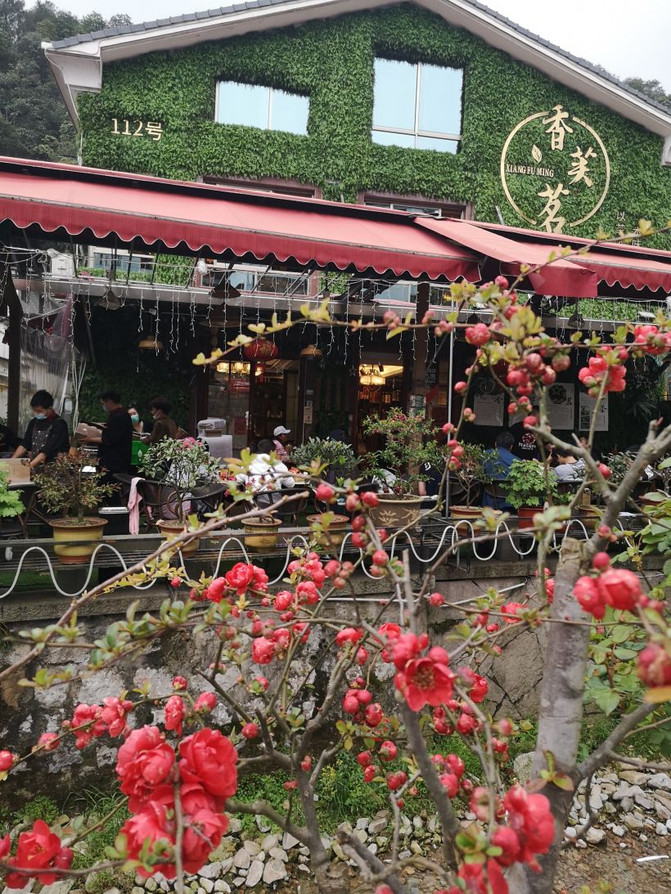 Su propio edificio de dos pisos, junto con el pequeño patio que pasa por el agua corriente, el entorno natural del jardín, la plantación de flores de melocotón en maceta, ciruelas espinosas de tigre y otros adornos de bonsai, dejan que las personas se deleiten en el hermoso paisaje de Meijiawu.