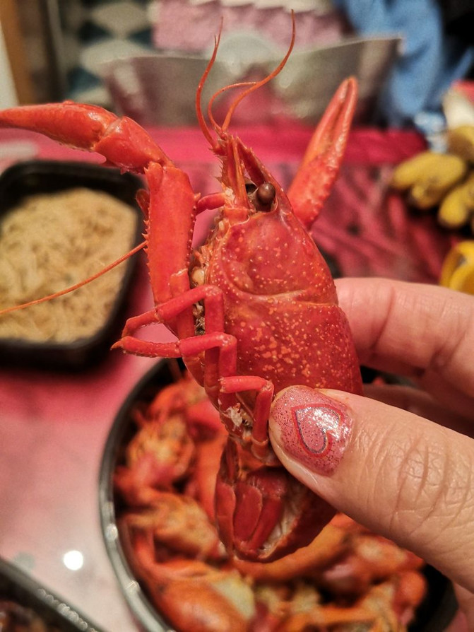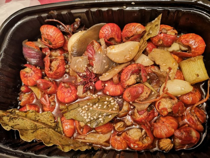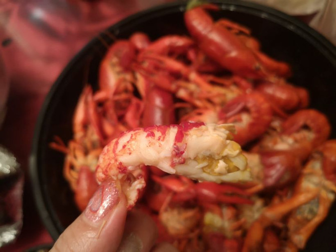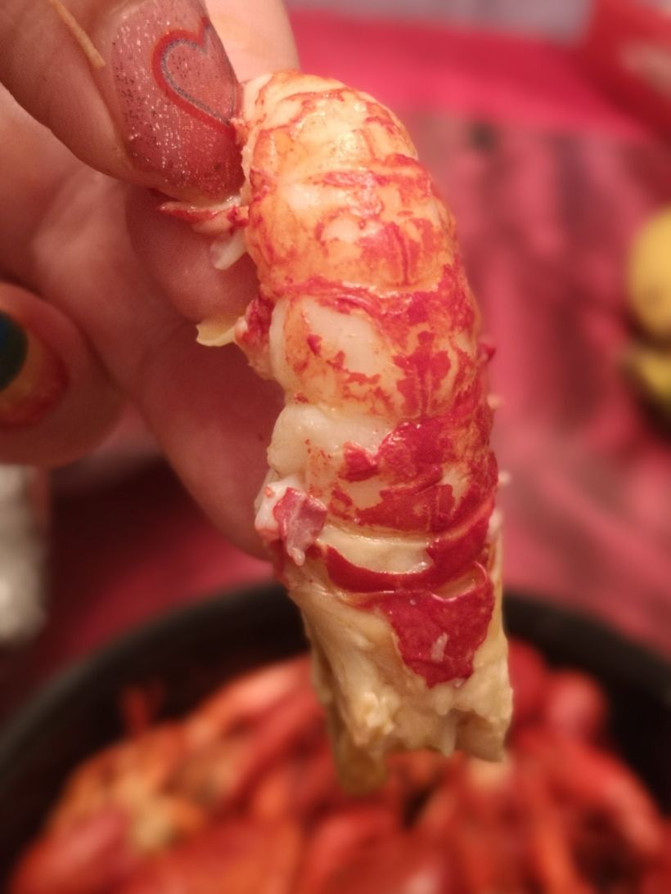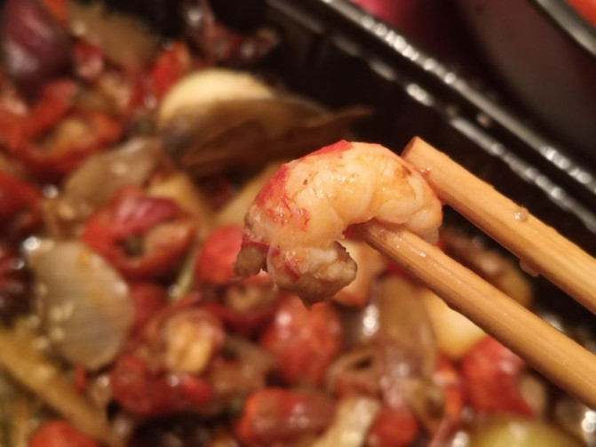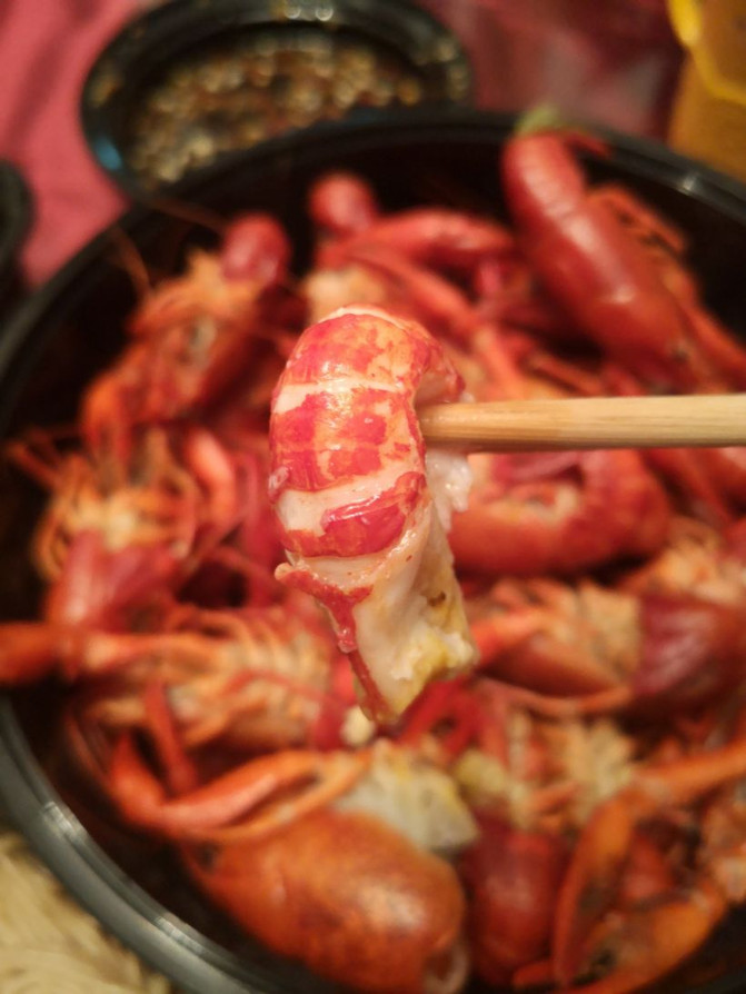 El color y el brillo también son atractivos, la cola de camarón picante y picante, el sabor final fresco y picante.Las langostas son de carne firme y cocinadas muy deliciosamente.