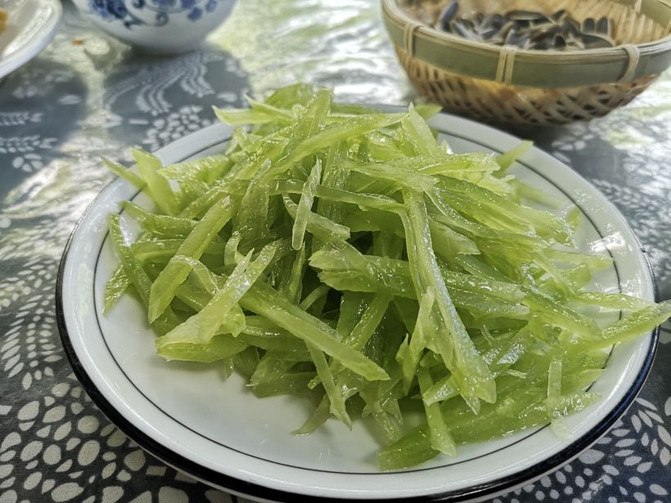 Tiene un aroma fresco y natural al aceite vegetal, y se prepara con una deliciosa sopa,El tono verde esmeralda de la sandía, el blanco lecheoso de la planta de bambú es crujiente y delicioso