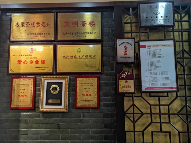 Meijiawu está rodeado de montañas verdes, aguas verdes y té Longjing para probar.La casa de té de Xiangtan es operada por los agricultores de té nativos de Changmei Jiawu.