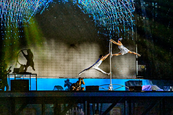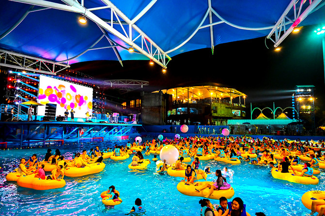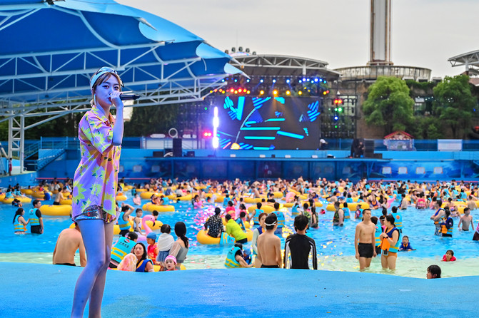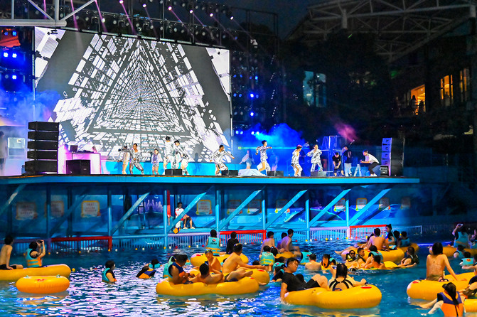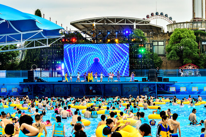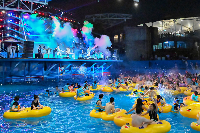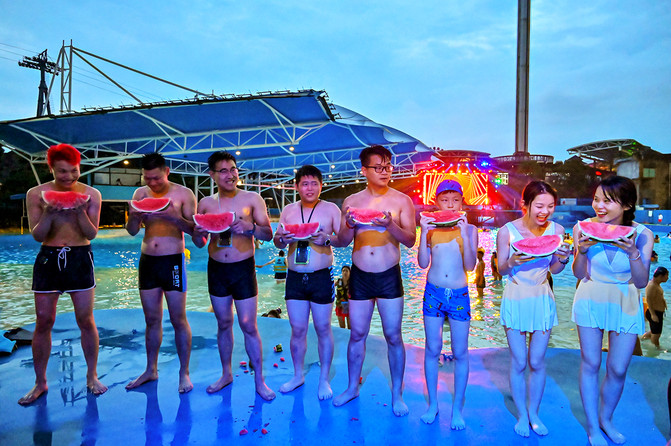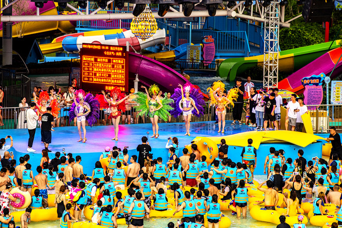 La piscina de ondas gigantescas es muy agradable durante el día y muy agradable por la noche. Si no recuerda mal, es a partir de las 18: 30 de la noche, el carnaval de baile acuático se realiza aquí, hay un crucero de samba caliente, hay una variedad de espectáculos de canto y baile con diferentes temas, hay competiciones como pelado de langosta, comer sandía, correr alfombra mágica, etc., también hay acrobacias, magia y otras actuaciones que sorprenden a los ojos.