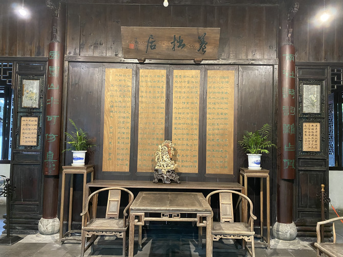 West Garden, el jardín privado más grande de la antigua ciudad de Xitang, el vestíbulo no es grande, la entrada tiene un cielo de cueva único, el patio es como un jardín, todas las flores y árboles, un pasillo de paseo girando a través de él, caminamos hacia arriba, un lado de la colina falsa tiene un pabellón, el otro lado se extiende a través de la casa interior. En el edificio, la casa minimalista, dispuesta con ventanas de rejilla, abierto uno o dos de ellos, paraguas de papel de flores en el pasillo interior cubren el cielo y el suelo, una mujer invitada se apoya en la ventana para ver el paisaje, nubes de humo en el lago oeste, la concepción artística ya es la reunión del pasillo.