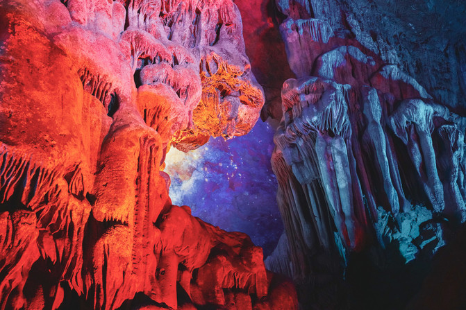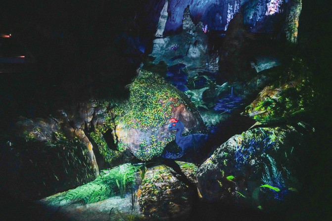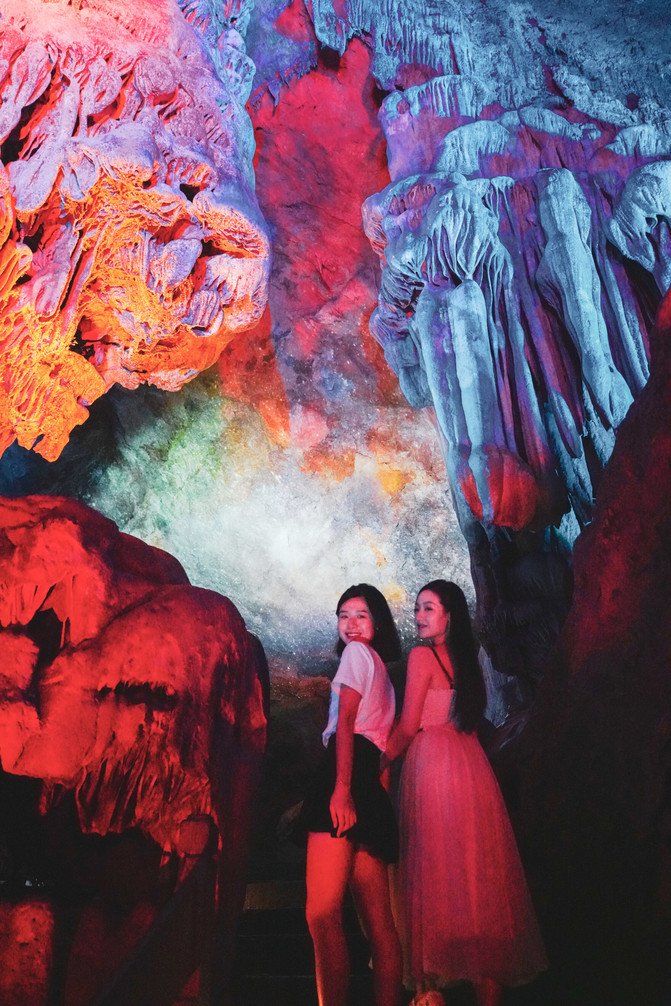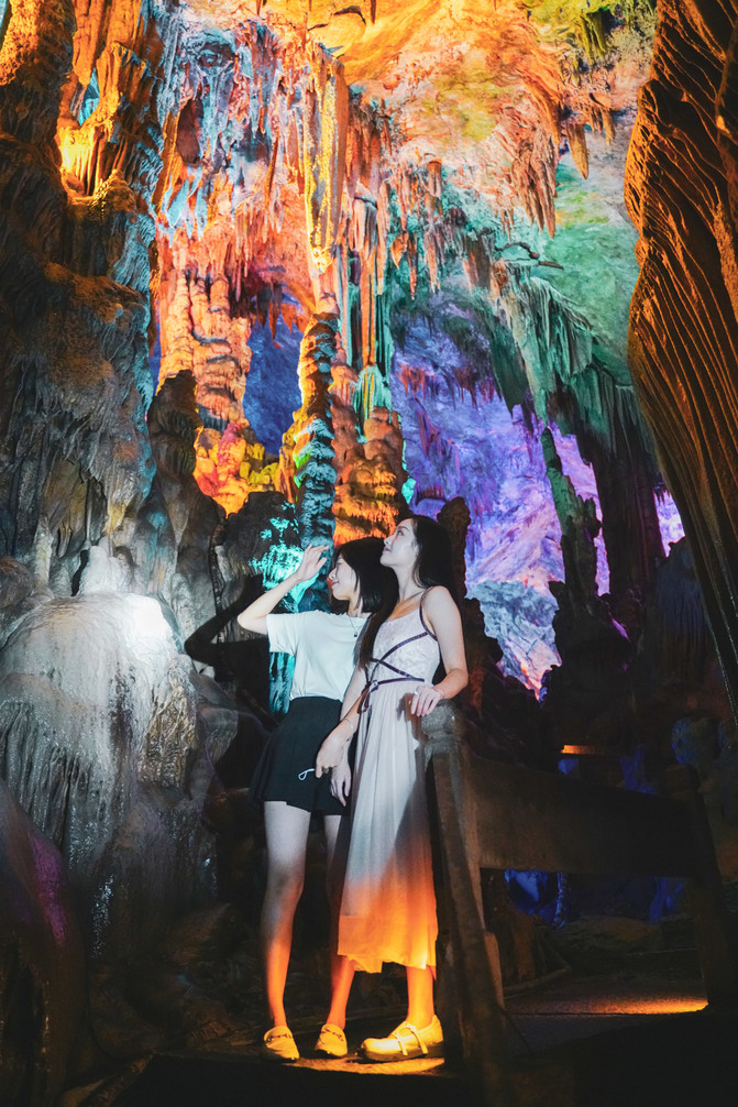En el mundo de las cuevas como un país de hadas, las coloridas estalactitas como estrellas cubren el cielo, se mezclan con la fantasía de la luz y la sombra de las cuevas cársticas 3D a simple vista, decenas de metros de cúpula, digno de ser "la corona de las cuevas nacionales".