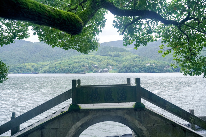 "Una noche en el atraque, Xiaoyan Qichu cejo. "La bahía de Longmen en el sur del río Jiangnan es un puerto natural en el río Fuchun. Solía ser un atraque de pesca de algarra, por lo que también se llama la bahía de algarra. Aquí, Hui Canyon, Pinghu, Isole Island, acantilados, cascadas y pino extraño se integran, que es uno de los paisajes más hermosos del río Fuchun.