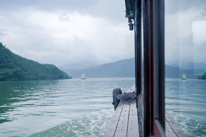 "Fuchun Mountain Residence Map" es elogiado como "Patio de las orquídeas en la pintura", un barco a través de la sección más espectacular del río Fuchun - Qilitaki, se puede ver las estribaciones de la montaña Fuchun.