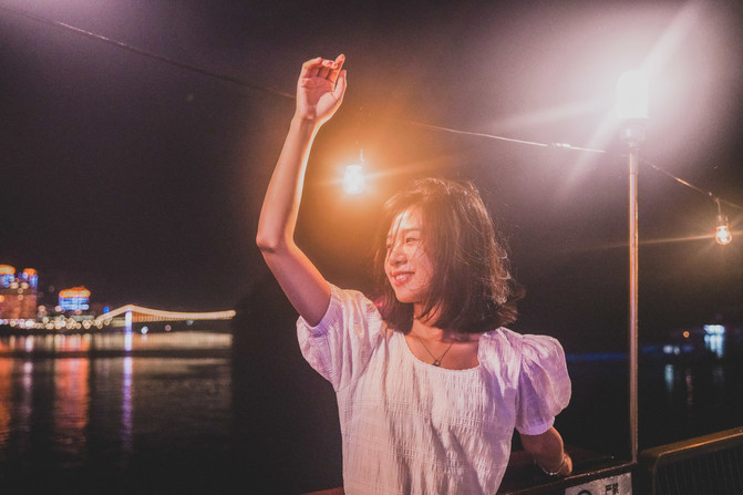 En la cubierta, los cantantes residentes sintonizaban cuidadosamente, las luces y sombras a través del estrecho eran sueños confusos, no sé qué estilo era el río Fuchun hace seiscientos años, probablemente la sombra del barco, la pintura de la tela lentamente.
