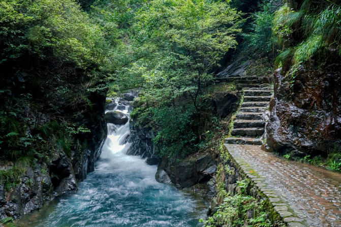 El sistema de agua en todo el lugar escénico es muy rico, vapor de agua abundante, montañas verdes, cañones profundos, arroyos que cubren el sol, arroyos que murmuran, y bosques exuberantes, bambú cultivado y campos exuberantes de la paz, a lo largo del camino puede disfrutar de una curación de agua y oxígeno pura natural.