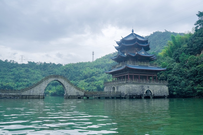 El nuevo puente de Diaotai "Lingbo" construido en 1984, como el arco de Changhong, sobre el río, el nombre del puente se toma del poema "Yan Zi Ling" de Li Bai: "El ciprés de la pinza es solo, difícil de ser un melocotón. Y en la palabra "el ", en la palabra" el ", en la palabra "el ", El agua, la luna, el agua, la luna.