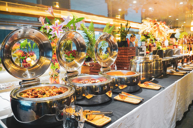 La brisa de la noche sopla en la cubierta, y la noche del río es vista, y un rico buffet de mariscos empuja las papilas gustativas al clímax.