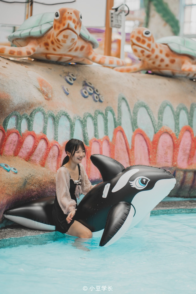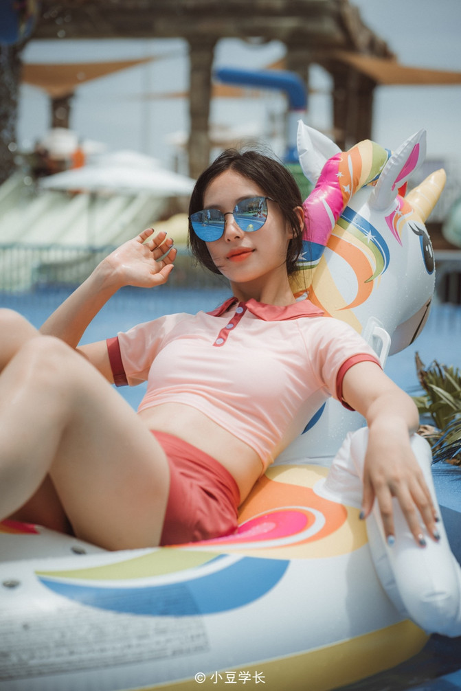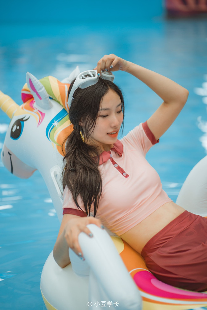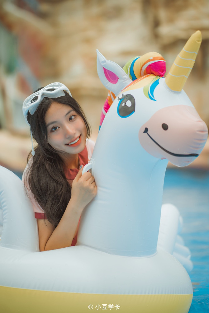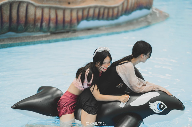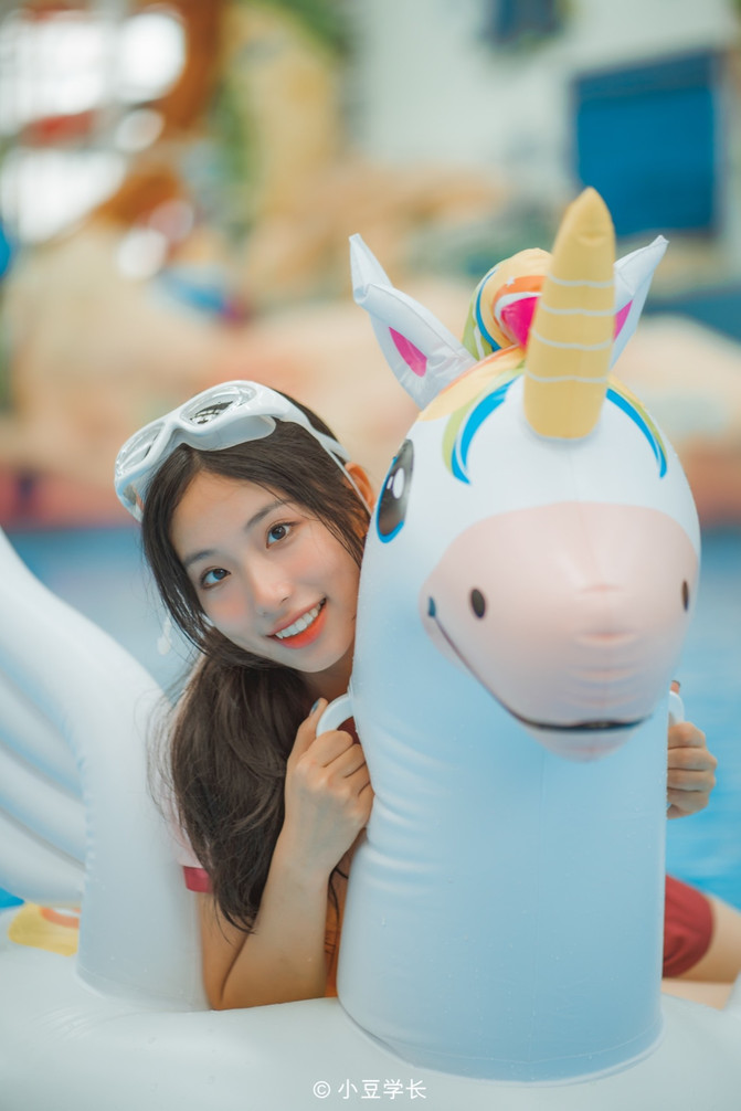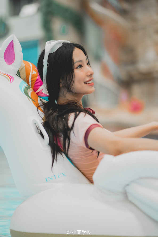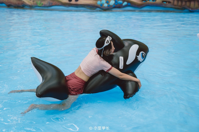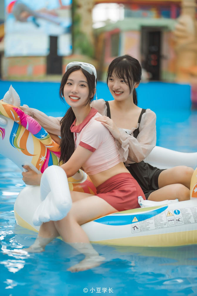 El agua azul, el colorido círculo de natación, el traje de baño de las chicas juegan entre ellos, el año más romántico es el verano, es mi temporada favorita, ir temprano por la mañana aquí, puede perforar rápidamente varios artículos.