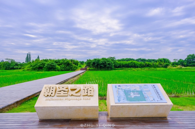 En el camino de la peregrinación, admire las ruinas del palacio de la montaña Mojiao hace 5.000 años aquí es muy glorioso, el sitio del palacio de la montaña Mojiao en el centro de la antigua ciudad de Liangzhu, aquí hay una terraza de 300.000 metros cuadrados, conocido como "Mojiao Mountain". Está construido artificialmente utilizando montañas naturales, con la base de lodo verde y loess puro acumulado en la parte inferior. En la parte superior de la meseta de Mojiao, hay la montaña Big Mojiao, la montaña Little Mojiao y la montaña Tortuga, que sirven como la base para tres grandes palacios independientes.