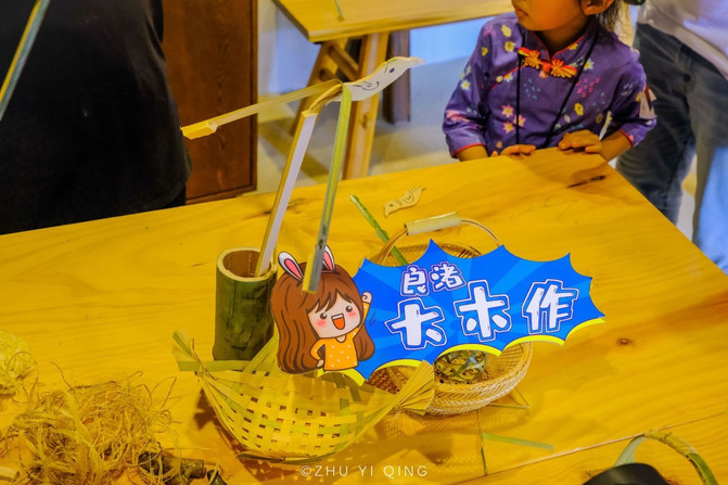 En el área de experiencia también puede disfrutar de ser un carpintero, hacer una variedad de productos de madera y artesanías de bambú, mire, bajo la enseñanza del maestro, hice una rana de bambú.