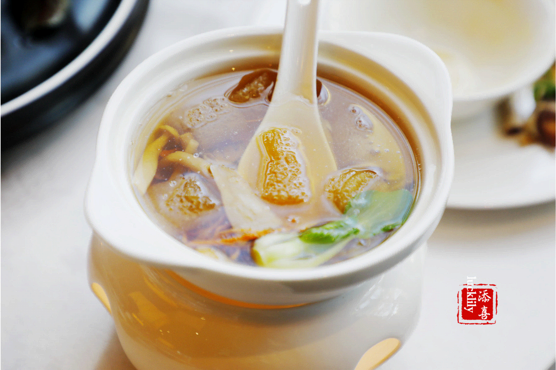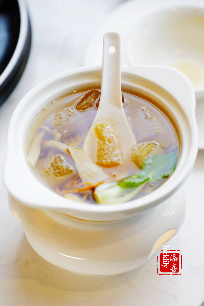La sopa de sopa de bambú de agalera de pino y hongos en el lugar es hermosa, sin una gota de flores de perlas de aceite, fresca e invencible.