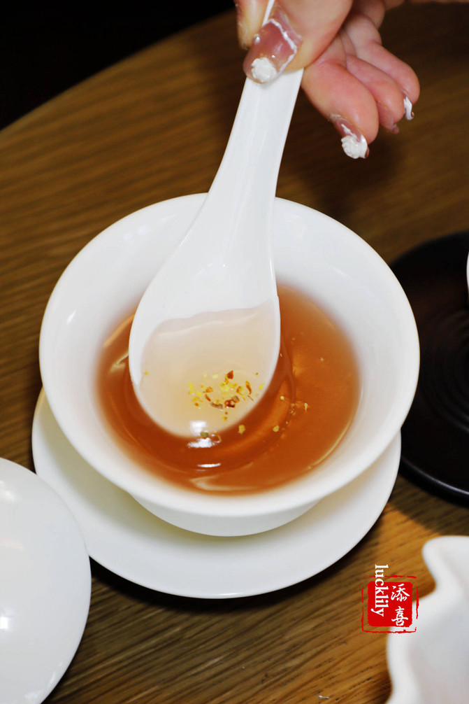 Y este aperitivo característico de Hangzhou osmanthus hueso oeste polvo prestado.
